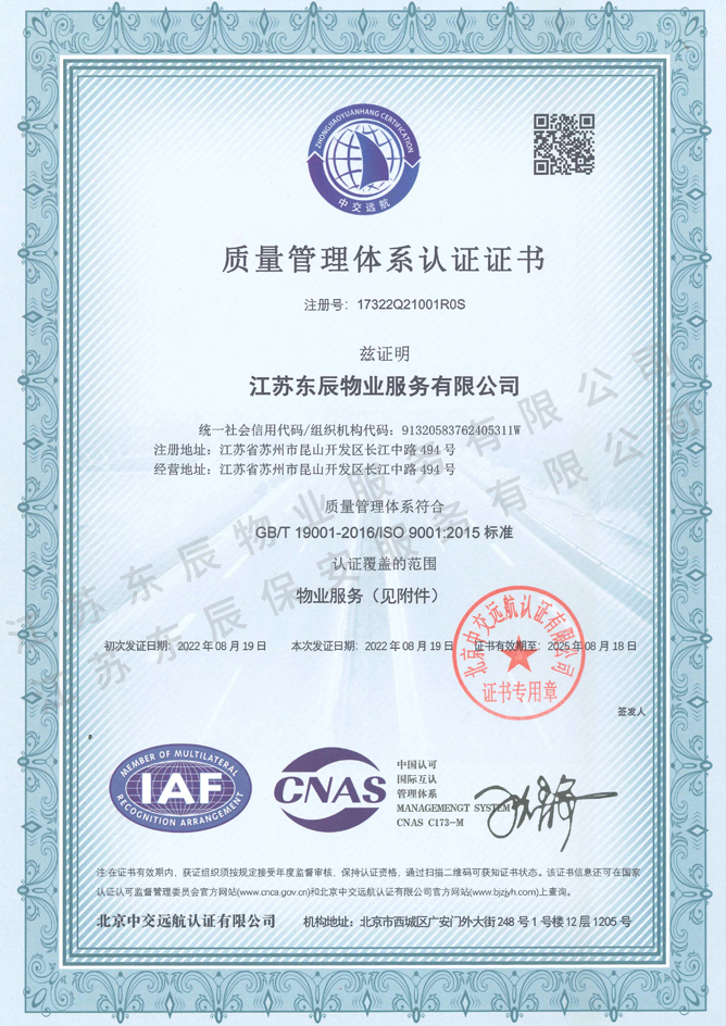 2022-2025年質(zhì)量管理體系認(rèn)證證書(shū)